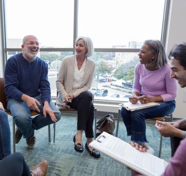 Finding a comfortable environment to share your thoughts and feelings about PD can make a big difference. Join a support group in your area to connect with local members of the PD community. In addition to groups for people living with Parkinson’s, there are also support groups available for care partners. Visit our Chapter pages or contact our Helpline at 1-800-4PD-INFO (1-800-473-4636) for help finding a support group.
