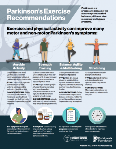 For more information about the Parkinson’s exercise recommendations and to see the full exercise convening report, visit www.Parkinson.org/ExercisePros.