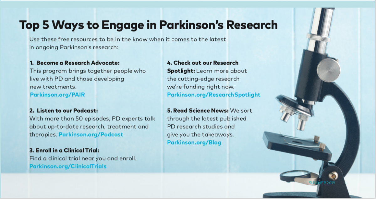 Every day, potentially groundbreaking Parkinson’s disease (PD) research ideas are explored in labs funded by the Parkinson’s Foundation. Since research never stops, I am excited to share our latest Parkinson Report newsletter with you that focuses on a topic that is critical to the Foundation and our community: research.