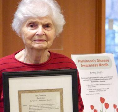 The Parkinson’s Foundation well-documented fact sheets and numerous books and periodicals and website allow me to present the Foundation’s message. It is one which resonates with our senior communities and is well received. The feedback is undeniably personal because everyone with PD gets it! We are all the same because we all have PD, but we are all different because we all have PD. That is my message.